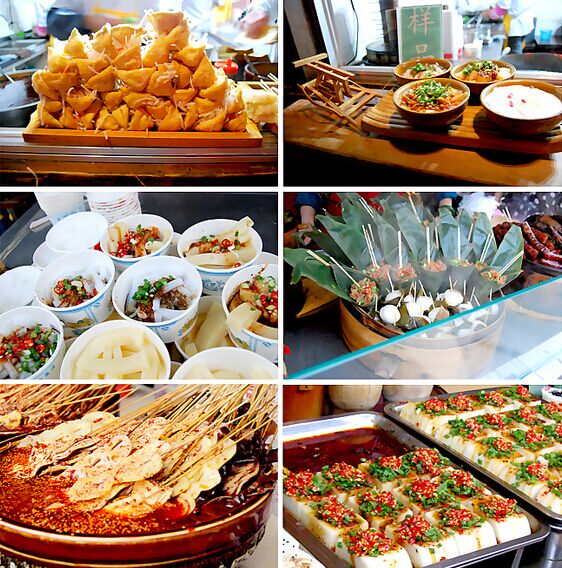 那些特色小吃,钟水饺、担担面、赖汤圆、三大炮、伤心凉粉、龙抄手、兔头、蛋烘糕、串串香、蹄花汤、肥肠粉、酸辣粉、钵钵鸡、糖油丸子、牛肉焦饼、锅魁等等,琳琅满目,各味俱全。