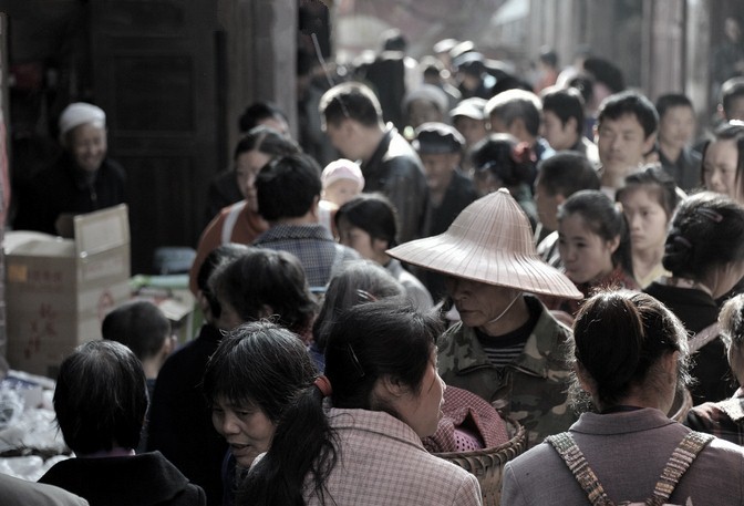 非常挤,新年大庙会也不过如此甚至不及。人一层一层地缓慢移动,前胸贴着后背。即便是这样,还有人在人群里骑着自行车、摩托车。