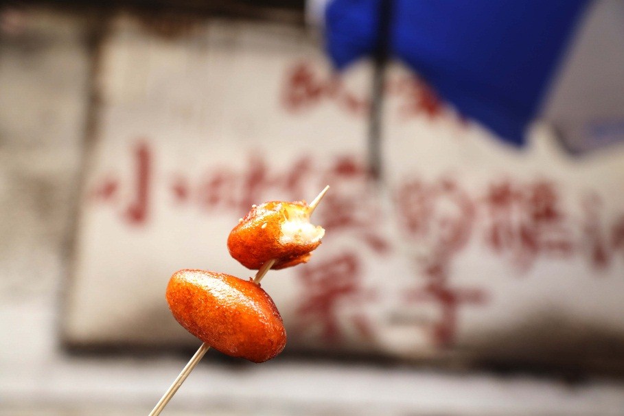 我所知道的且以身试法的糖油果子,目前来讲也就二医院外面那家正宗,现在卖3.5元一串,每串5个,在成都算是贵的。