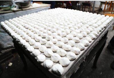 每天8点样子开卖,到晚上8点样子收摊,一天要出十几锅,每一锅三四百个。即便是这样,到下午三四点,还是要排很长的队。