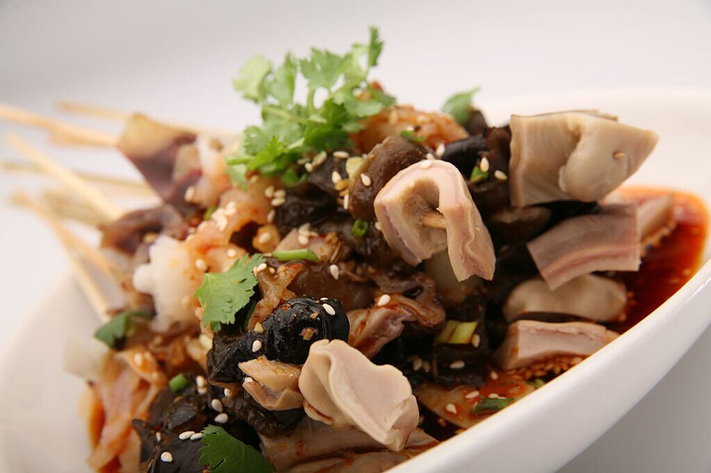 重庆山城啤酒,得就串串。还得是面对一口大锅,满锅红辣翻腾,捞都捞不完,吃一烫二看三,满眼都是。菌花,鹅肠,蒜泥香油。旁边放着言子儿听,更美。 青岛啤酒,配鱿鱼。坐堤
